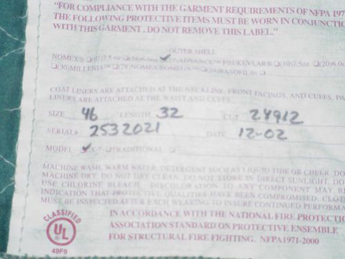 44 R FIREFIGHTER TURNOUT Bunker Gear -