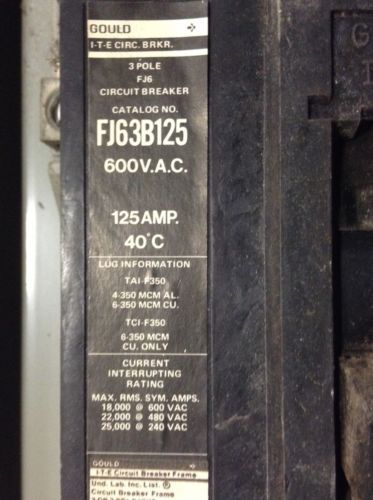 ITE CIRCUIT BREAKER 3P 15A 480V E43B015 GOOD COND.
