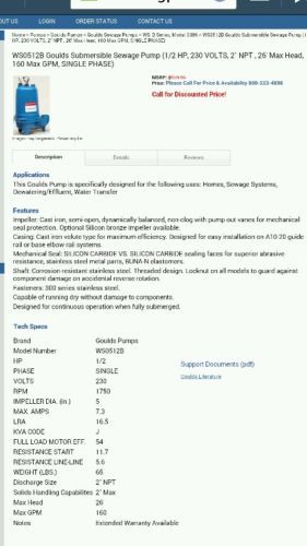 GOULDS Submersible Sewage Pump E1227786