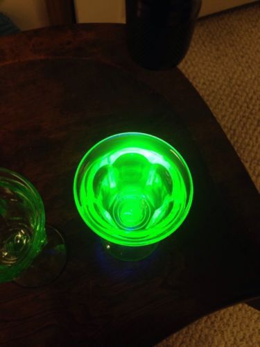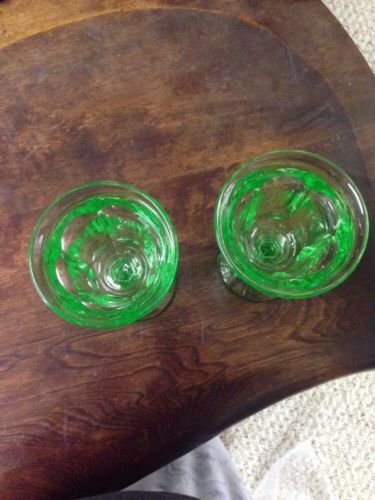 GREEN VASELINE GLASS URANIUM FOOTED STRAWBERRY SALT TABLEWARE (( ID121233 ))