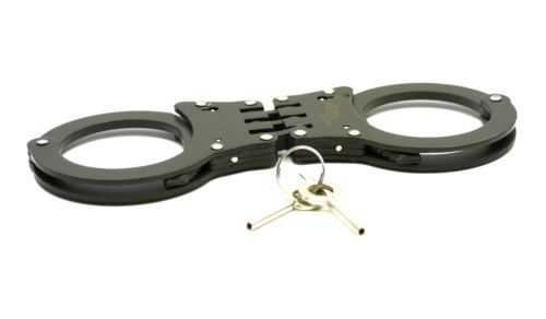 Steel Police Cop Sheriff Officer Heavy Duty Military Handcuffs Hinged 2 Key Lock