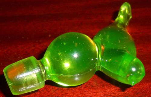 Green Vaseline uranium glass Eye wash / rinse cup holder glows yellow canary art