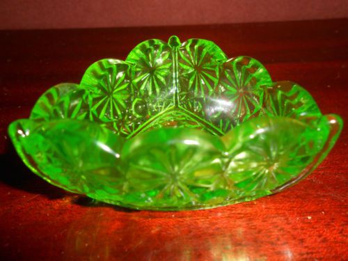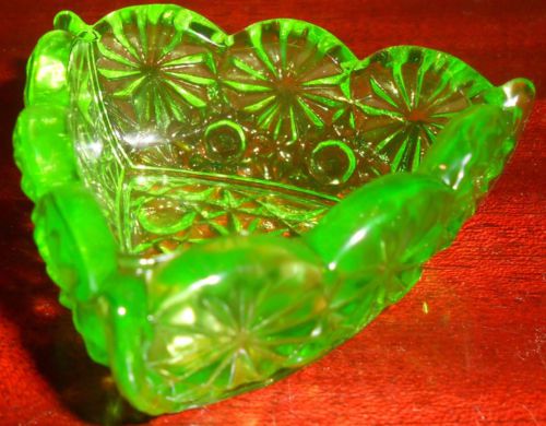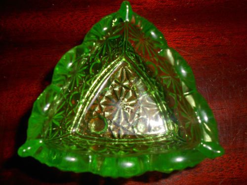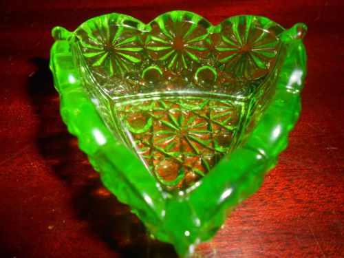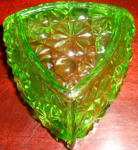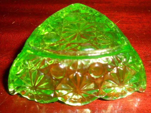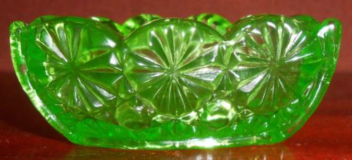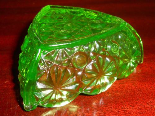 Green Vaseline glass pattern candy jam soap dish master salt bowl uranium yellow