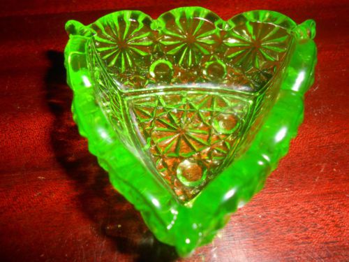 Vaseline glass candlewick pattern hat pin tray dish jewelry dresser tip uranium