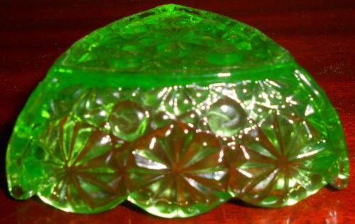 Green Vaseline uranium glass toothpick / match holder swag with brackets pattern
