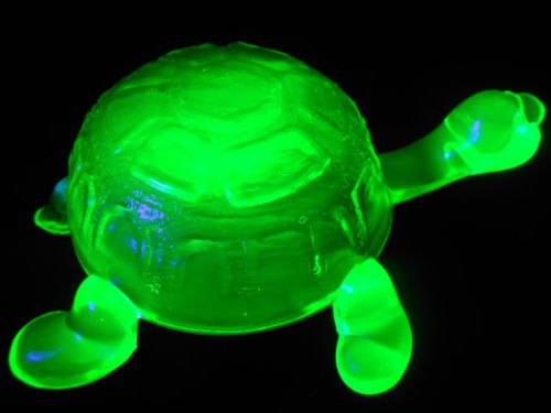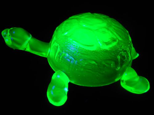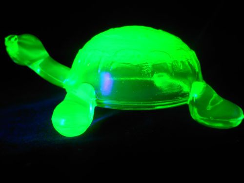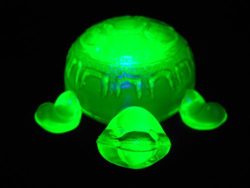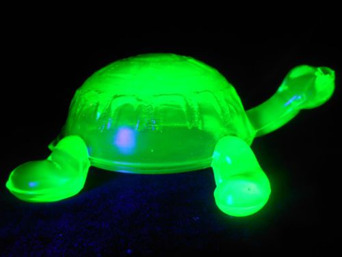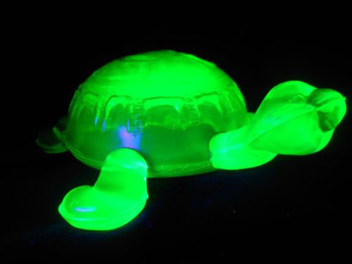 Green vaseline glass tomahawk Indian head chief american art native axe uranium