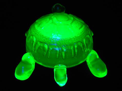 Green Vaseline glass pattern candy jam soap dish master salt bowl uranium yellow