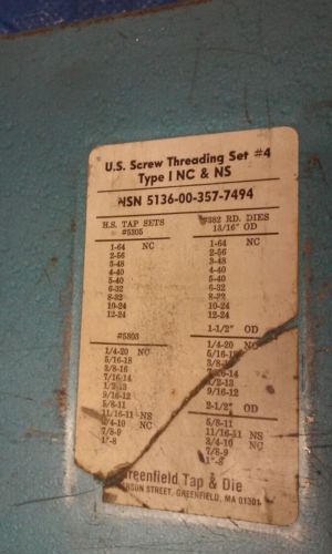 GREENFIELD 1 - 8 START 4 FLUTE TAP MACHINIST TOOLING TAPS N TOOLS