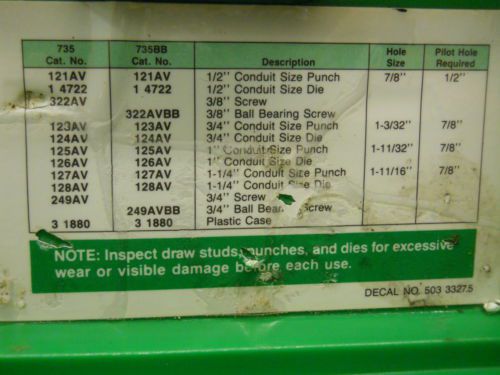 Greenlee 3" Conduit Punch & Die KO set 739BB / 19976