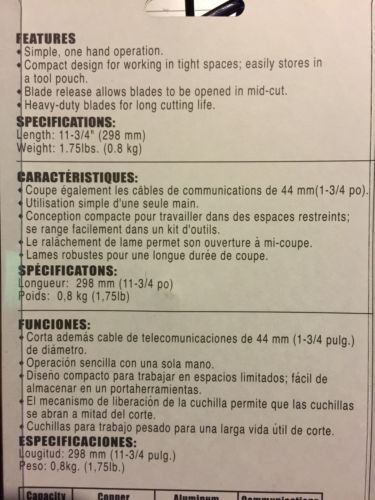 Thomas & Betts 366R 31" Copper & Aluminum Cable Cutter. View Jaw Photos