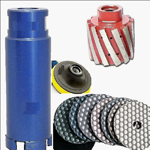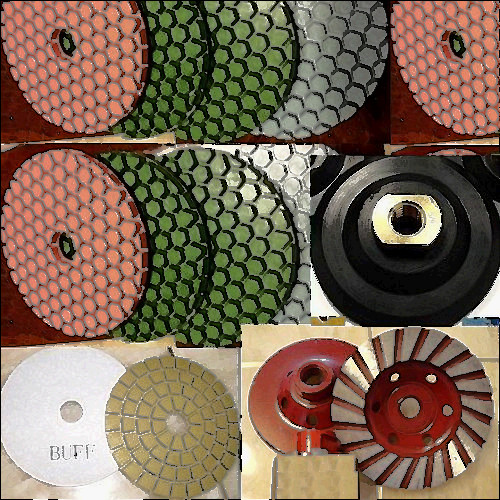 Remind: FREE SHIP to buyers in United States. This package carries (a)-(d): (a) 16 Pcs of 4" Diamond Polishing Pad for granite marble concrete: 3 X Grit 50 100 200 400, 1 X Grit 800 1500 3000 6000. 1 Piece of 4" Rubber Backer / Pad Holder (Important Remind: It is 5/8"-11 thread.