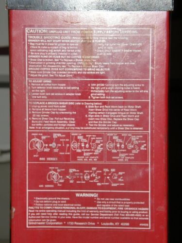 Grindmaster Model 495 Coffee Grinder, Five Settings,Fully Operational, USED