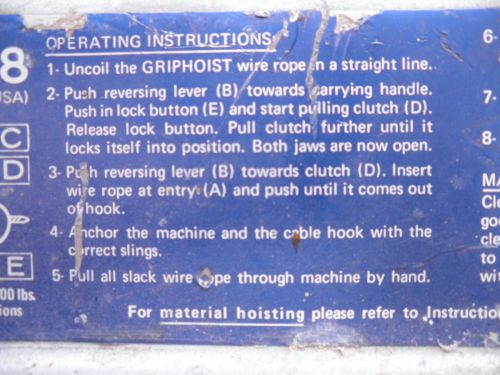 | Seller Notes | “THIS HOIST WAS TESTED AS PER PHOTOS AND ALL PARTS INTACT AS PER PHOTOS. WAS USED BUT WORKS GREAT.” |