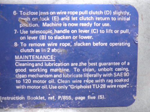 Maasdam Come Along 144S-6 Power Puller 1,000 LBS Pull Capacity Hoist