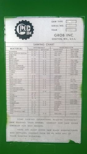 (1) Grob Inc. 4V-24 Heavy Duty Vertical Band Saw - Used - AM14245