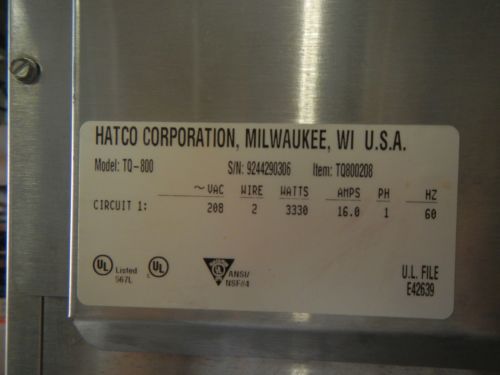 Hatco Conveyor Toaster 208V; 1PH Model: TRH60