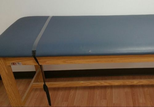 | “Fantastic condition, has sat in an unused medical office. Minute (very small) 1/2 cm hole in the urethane fabric (seen in last photo), DOES NOT run a risk of further tear. Paper holder / dispenser & strap in excellent condition with no damage.” |