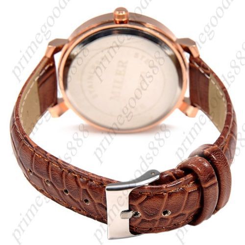 Round Case Bezel PU Leather Quartz Wrist Lady Ladies Wristwatch Women's Black