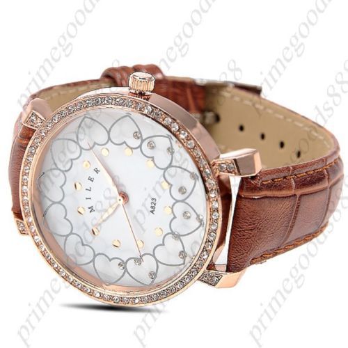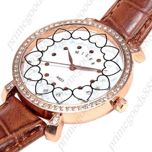 Hearts Rhinestones PU Leather Quartz Heart Lady Ladies Wristwatch Women's White