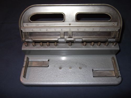 Heavy Duty Metal 2 Hole Paper Punch Mutual Centamatic # 200 USA Works Good Vintg