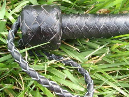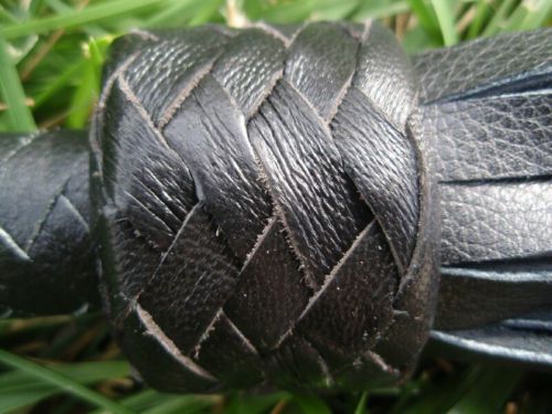 BLACK Leather Flogger CAT OF 9 TAILS NEW with WOOD WOODEN HANDLE - HORSE TRAINER