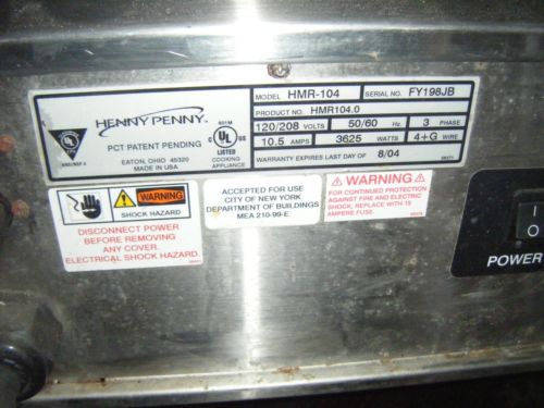 Henny Penny HC 900 warming cabinet NO RESERVE