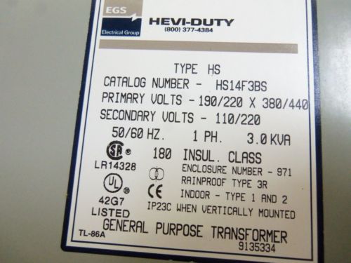 EGS HS12F1BS TRANSFORMER *USED*