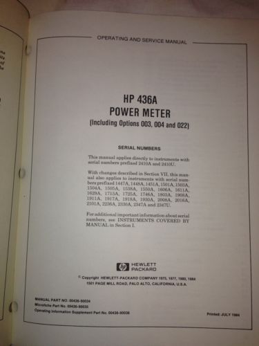 HEWLETT PACKARD 197B OSCILLOSCOPE CAMERA OPERATING & SERVICE MANUAL
