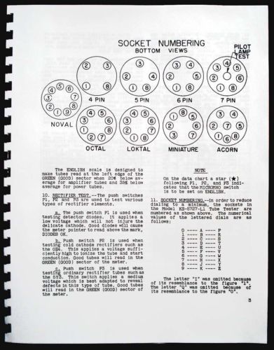 Mercury 1000 Tube Tester Tube Chart Updated 1971 version