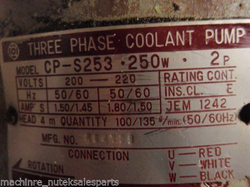 CP-S253 Hitachi Three Phase Coolant Pump, 200-220VAC, 50-60Hz, 135 l/Min, TESTED