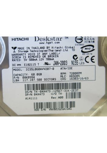 HITACHI IC35L060AVV207-0 P/N 133G0222 PCB B 36H65 29 01 SN VNVB02G2GTU26R