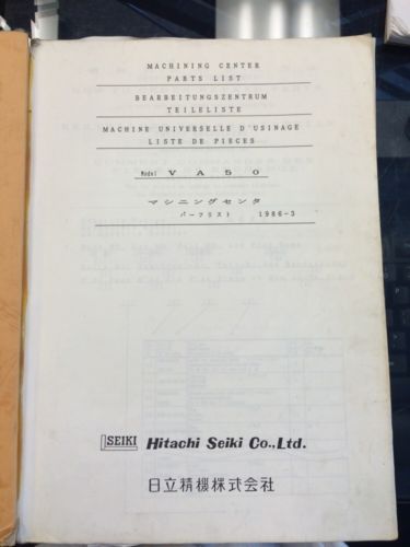 Hitachi Parts List Vertical Machining Center MACCMATIC- 614V Model Manual