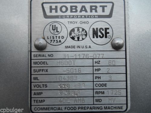HOBART H600T PIZZA DOUGH MIXER 60 QT MIXER with bowl guard , attachments H 600 T