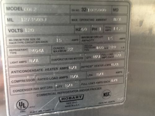 Seller Notes | “This is a used HOBART freezer that works perfect, but it has no shelves. If I can find shelves, I will put them with it, but assume it will come without.” |