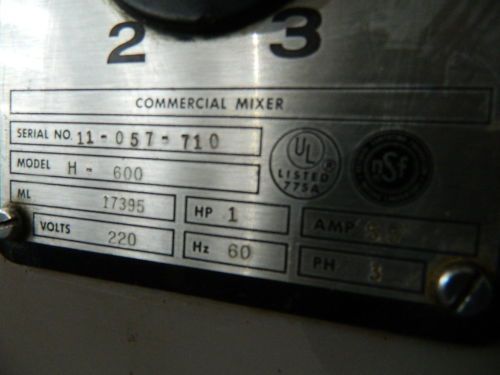 60 Quart Hobart H-600DT Commercial Stainless Steel Mixer