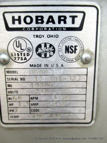 HOBART H-600T 60 QT MIXER, 4 SPEED 2 H.P. WORKS GREAT!!