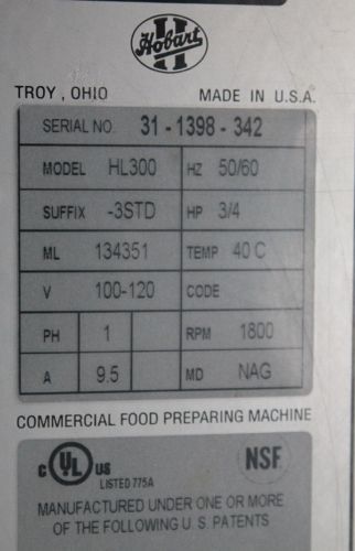 HOBART HL600 LEGACY COMMERCIAL 60 QUART MIXER HL-600 60 QT