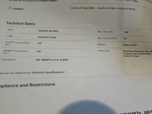 New Fulflo Pressure Relief Valve SPO760-95-M-2168, Rating:1000 PSI 1/2"