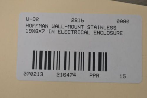 HOFFMAN C-SD20168SS WALL-MOUNT STAINLESS 20X16X8 IN ELECTRICAL ENCLOSURE B218471