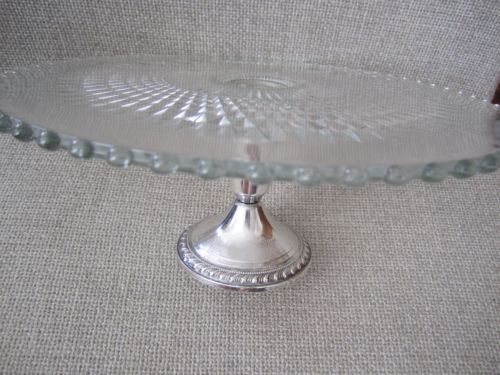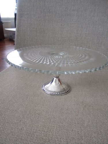 Square hunter green Glass cake serving stand plate platter pedestal raised tray