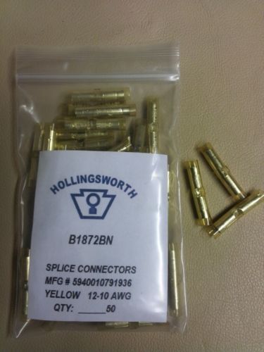 50) Yellow Butt Splices, 12-10 AWG, Fully Insulated, Nylon, Crimp Terminals