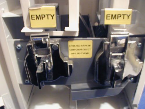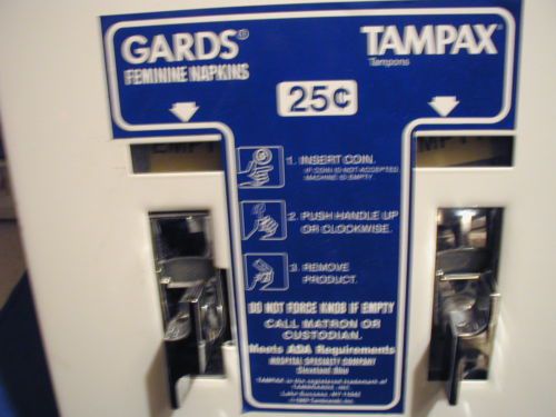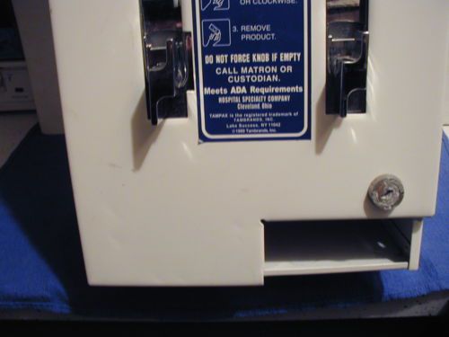 | Seller Notes | “Nice pre-owned femine napkin and Tampax dispensing machine. Charge 25 cents for either one! In great condition, with NO RUST NO DENTS Made in the USA by: Hospital Specialties Co. Meets ADA requirements and is wall mounted. NO KEYS!” |