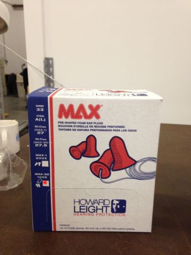 100 Pair NEW Howard Leight Max Corded Ear Plugs Max-30/3301130