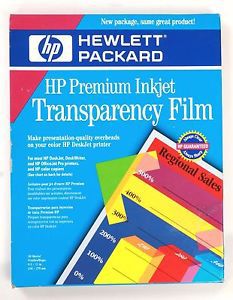 HEWLETT PACKARD PREMIUM INKJET TRANSPARENCY FILM OPEN BOX 20 SHEETS 8.5 x 11