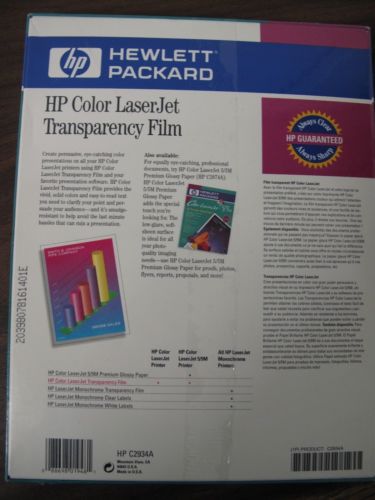 C2934A HP Color Laser Jet Transparency 8.5 x 11 sealed 50 Sheets