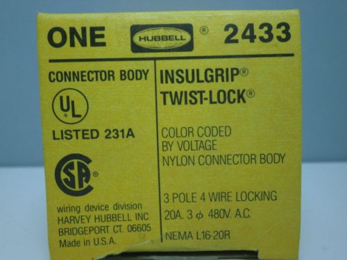Hubbell 2431 Turn-Twist-Lock Locking Plug 20A 480-Volt 3P 3-Phase 4-Wire L16-20P