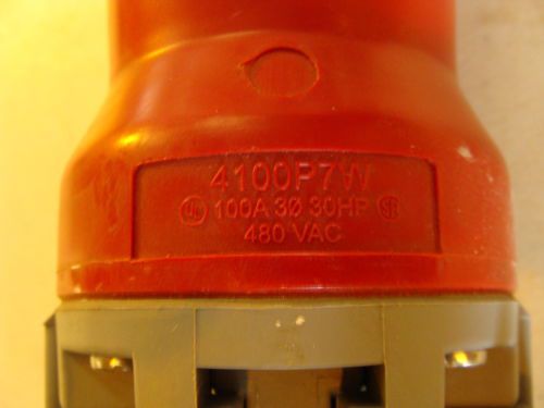 LEVTION 4100P7W PIN AND SLEEVE PLUG 100 AMP 3 POLE 4 WIRE 480V 3 PHASE USED