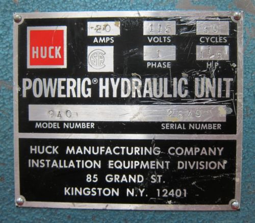Huck 940 POWERIG Electric-Powered Hydraulic Power Supply Unit For sale is the item shown in pictures, no additional accessories included. Hoses have wear and tear from previous use and plastic tab on 24V power plug is cracked (see photo 4), unit still power up fine. Hydraulic fluid will be emptied from reservoir before the item is shipped out. Item has been tested to power on, and comes with 30 days warranty. Please read the following terms of sale carefully. These terms constitute a legally binding agreement (contract) between the seller and buyer. By bidding on, or purchasing, the product posted in this eBay listing, the winning bidder agrees to and accepts all of the terms of sale stated below. TERMS OF SALE: Only what is shown in the eBay photo and mentioned in the listing is included, anything else should be understood to not be included. For sale is for the eBay item only, no service or tech support are included, but if you have a question feel free to ask and we'll answer if we can. All sales are final, please understand that this is an auction/liquidation environment, not a retail store, so make sure the item is right for you, before bidding. PAYMENT: We accept payment by Paypal, and we only ship to the address which the buyer provides within the Paypal payment, no exceptions. If you would like to pay with a non-Paypal payment method, please contact us before bidding to see if we can arrange something. Buyers are given 7 days from winning bid to pay, and payment is expected of all winning bidders If no payment is made within 7 days, an unpaid item reminder will be filed with eBay, and the buyer forfeits the auction win. We are required by state law to collect sales tax on all items shipping to a CA address. CA sales tax may be waived at our discretion, but only with a valid CA resale certificate - please contact us for resale exception *before* sending payment. DOMESTIC (US) SHIPPING: Local pickup is normally not available; exceptions are sometimes made, but only for higher-value orders. Please contact us first to see if we can make this arrangement for you, don't assume that we will be able to. We charge flat-rate shipping, and there is no extra cost to ship to AK, HI, PR, or PO boxes, these are all fine. Shipping cost includes packaging cost including time and materials, and also includes shipping insurance (either through carrier, or self-insure); we guarantee delivery to the address you provided, or else a refund if the carrier loses the package. Smaller items will normally ship USPS and heavier items will normally ship Fedex Ground. Heavier items going to AK, HI, PR, APO/FPO, or PO boxes will ship via USPS parcel post All items must be shipped using our shipping account, we don't use anyone else's account to ship items. Packages valued $250 or more will ship with signature required upon delivery. We cannot normally offer expedited or express shipping. If this is something that you crucially need, please contact us *before* bidding to see if we can do this for you. Items will normally ship within 2 business days from the date of payment clearing (but most items will ship the next business day). You can typically expect to receive your item in under a week for smaller items, or 5-9 days for larger heavier items shipping ground delivery. Combined shipping: take $3 off shipping for each auction won after the first, if the items are paid for together. FREIGHT SHIPPING: Oversized items (150+ LBs) may be picked up locally, or may be shipped freight, but scheduling the freight shipment is buyer's responsibility. Scheduling a freight shipment may be done at freightquote.com, or another freight broker or carrier, only a credit card is required. Freight shipping is from zip code 95134, commercial location, forklift available for loading, and outgoing shipments may be scheduled from 12 noon-6pm on weekdays. We can prepare the shipment for you upon request, palletizing, strapping down, and/or shrinkwrapping, there is a $25 palletizing fee. Bill of lading must be provided to us at least 24 hrs in advance of scheduling shipment, and ship-to address must match the shipping address in your Paypal payment. INTERNATIONAL SHIPPING: International bidders, please contact us about the possibility of international shipping, prior to bidding/purchasing, not all items may be shipped internationally. International buyers are responsible for additional costs of international shipping: shipping cost and also import duties / taxes of your country of residence. International shipping cost is NEVER refundable for any reason. Please only bid if you understand this. WARRANTY: All of our Ebay items are guaranteed to arrive working normally, and they come with warranty. If there is any problem with your order we will provide a replacement item or a refund, but we ask that you return the item PROMPTLY, please try to return it within 2 weeks, and should be received by us at the very latest 30 days after when you received the package. After 30 days we cannot accept any returns, unfortunately, so please check your purchase promptly and let us know if there happens to be any issue. Buyer is fully responsible for return shipping. Items must be returned in the same condition as shipped, with all included items - returning the item damaged or dismantled will void the warranty. We do not cross-ship, or ship any replacement, before the item is returned to us. Once the item is returned, we will ship a replacement item, if it's available. If a replacement isn't available, a full refund, including original shipping & handling charges, will be given. FEEDBACK:Before leaving neutral or negative feedback, please email instead, all issues can be fixed by communicating, we prefer to have satisfied customers COMMUNICATION: All communication is by email only, not phone - please use the "Ask seller a question" link in the auction page. All reasonable emails will be replied to, please allow 24-48 hours for a response, and check you