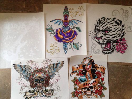 Lot of 120 Professional Graphic Heat Transfers ~30 Designs~ Biker/Outlaw/Skulls