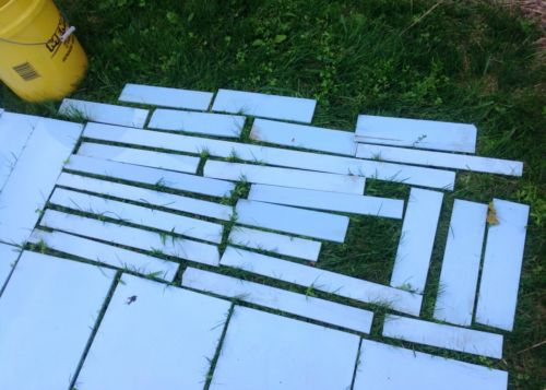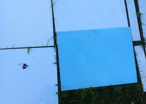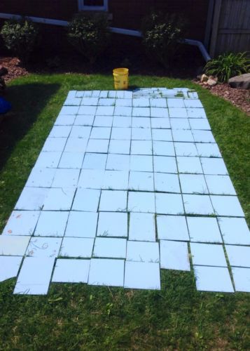 | Seller Notes | “Many 12 x 16 in perfect condition. A handful have perforations and some have corner and edge chips. Many many usable tiles for period storefront restoration or architectural repurposing. Majority have mastic blobs removed. Glass surface could use good solvent cleaning, some overspray, mastic residue, etc.” |